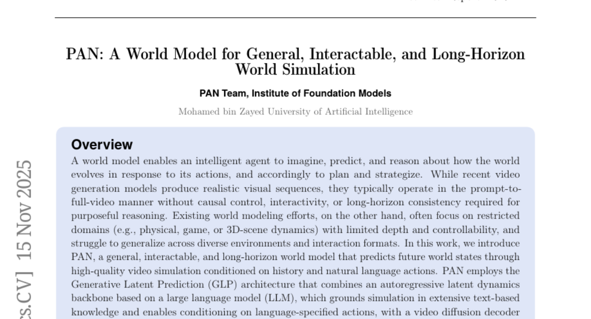 PAN: A World Model for General, Interactable, and Long-Horizon World Simulation