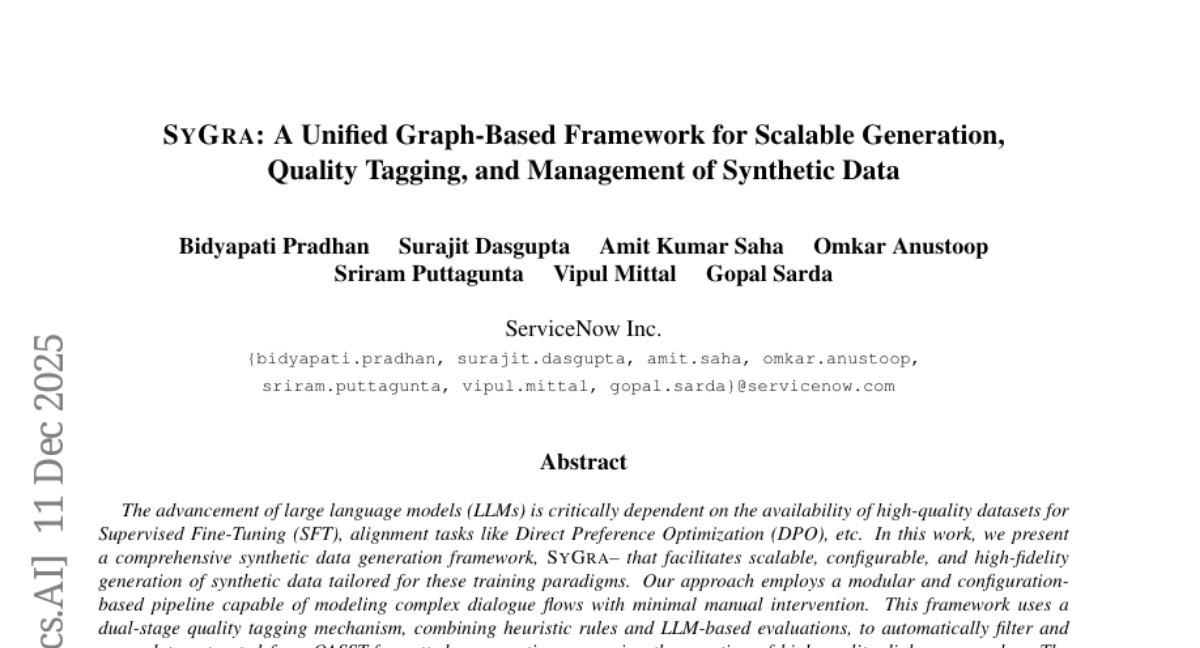 7 SyGra: A Unified Graph-Based Framework for Scalable Generation, Quality Tagging, and Management of Synthetic Data ServiceNow-AI 30
