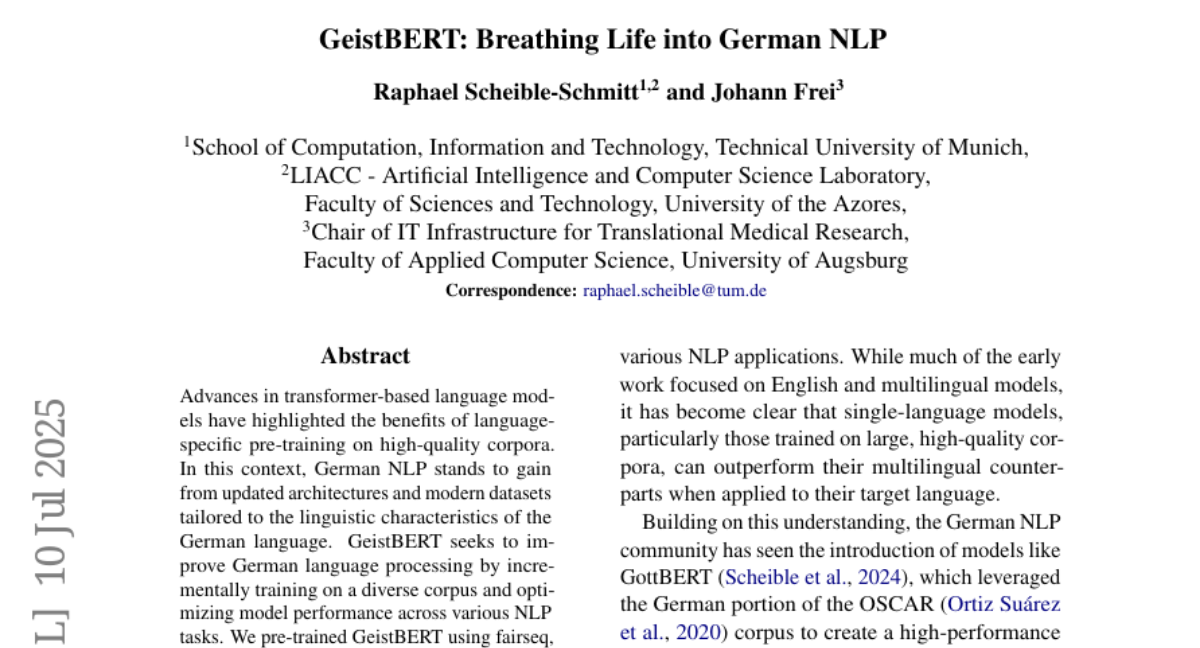 Universitätsklinikum Freiburg's profile picture Technical University of Munich's profile picture Klinikum rechts der Isar der Technischen Universität München's profile picture ChristBERT's profile picture GeistBERT's profile picture PortBERT's profile picture HalleluBERT's profile picture SindBERT's profile picture GottBERT's profile picture